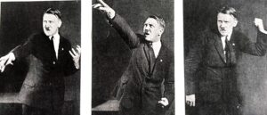 Hitler, so Hannah Arendt,  hatte eine schlimme Kindheit. Es gab auch schlimme Erfahrungen im 1. Weltkrieg: Nach einer Vergiftung mit Senfgas war Hitler blind. Edmund Forster, so liest man, habe sich als Marinearzt Hitler angenommen und ihn hypnotisiert, um seine hysterisch bedingte Blindheit zu heilen. Eine Geschichte kursiert, ein Stabsarzt habe Hitler in der Absicht, ihn wieder sehend zu machen, suggeriert, er sei ein von Gott auserwählter und werde daher wieder sehen können. In der Tat sprach der Führer später davon, von Gott auserwählt zu sein. War er überhaupt der Despot, den wir als Hitler kennen, oder spielte er nur den „Hitler“, spielte er den Despoten? Auf Fotos aus einem Studio im Jahr 1926 sieht man ihn tatsächlich dabei, als Schauspieler zu lernen, „Hitler“, den Führer, den wütenden, wütigen „Gottgesandten“ darzustellen. Gottgesandt war Hitler als Obrigkeit auch von der Bibel (Römer 13,1-7). Damit hatte er Rückendeckung der deutschen Kirchen. Die kam auch vom Volk. Auch das Volk glaubte an diese Gesandtheit (Ausnahmen). Die Folge: Ein unglaubliches Feedback für Hitler, gerade beim  Thema  Gesandtheit.