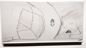Hier hat ein Kind die Kreuzigung ohne die Möglichkeit eines Wahnes nachempfunden und sich selbst oder das Geschwisterchen „stellvertretend“, wie die Kirchen lehren, am Kreuz gemalt. Jesus sei ja „stellvertretend“ für dieses Sünder-Kind ans Kreuz gegangen. Hier könnte eine Unachtsamkeit der Aufsichtspersonen im Atelier vorliegen. Hier ist ein Kind traumatisiert worden und präsentiert uns seinen Schaden in seinem Gemälde. Und irgendwann wird es vielleicht als Folge dieses Traumas auch den Weg der Erleichterung sehen, den jeder Schizophrene einmal ging, den Weg in die Illusion oder den Wahn.